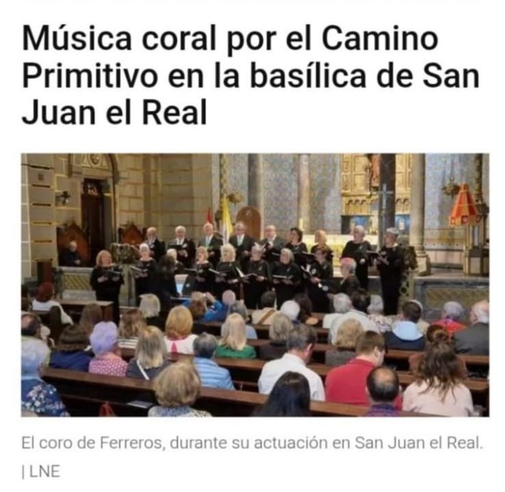 Publicación de la Nueva España, en la actuación por el Camino Primitivo junio 15, 2025 coroferreros Comparte esto: Compartir en X (Se abre en una ventana nueva) X Compartir en Facebook (Se abre en una ventana nueva) Facebook Me gusta Cargando... Relacionado Publicado por coroferreros Asociación Musical Coro Ferreros Ver todas las entradas de coroferreros