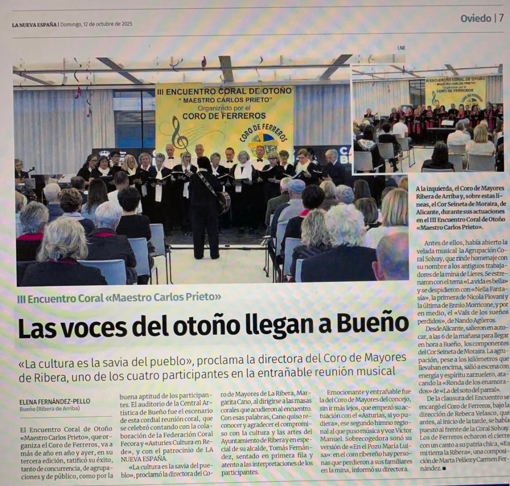 Publicacion en LNE del III ENCUENTRO CORAL octubre 12, 2025 coroferreros Comparte esto: Compartir en X (Se abre en una ventana nueva) X Compartir en Facebook (Se abre en una ventana nueva) Facebook Me gusta Cargando... Relacionado Publicado por coroferreros Asociación Musical Coro Ferreros Ver todas las entradas de coroferreros